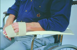 - Pivoting Wheelchair Arm Positioner, 18. Provides a comfortable resting position for the paralyzed upper extremity. Pivots for elbow flexion and extension. Hand rests on a palmar arch support, maintaining the position of rest. Slides onto any wheelchair arm support and clamps securely into place.