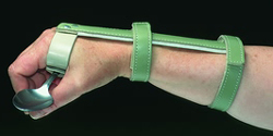 - ADL Wrist Support with Palmar Clip holds the weak wrist in position for eating and other functional tasks. Leather-covered metal adjusts easily. Fits most residents with minor adjustments. Palm pocket holds utensil, toothbrush or other devices. Works well in the dining room because it's so easy to keep clean. Sizing: Small/Medium for most women and smaller men; Medium/Large, most men and larger women. Adl Wrist Support With Palmar Clip, Medium/Large, Left.