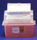 - Gatorguard In-Patient Sharps Containers, 5 Quart Translucent Red, 14"H x 6"D x 13"W. Tumbler design allows for disposal of various sized items, from a lightweight butterfly to a 60cc syringe. Easy visibility of recommend fill line. Signals when container's capacity is reached with a FULL indicator. Horizontal drop-in system maximizes full use of container. Convenient lift tabs to assist deposit if needed. Special independent lid locks the filled container closed for final disposal. Complete line of brackets and accessories.