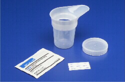 - Features a 4.5 oz. graduated, translucent wide-mouth container with detachable sterile funnel, leak proof screw-on lid, patient label and sterile fluid path. Also includes 3 BZK towelettes. Latex-free