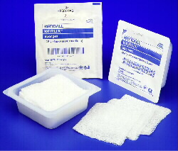 - Kerlix 4x4 sponges, 2's in Peel-Back pkg, sterile. Prewashed, fluff-dried woven gauze, with crinkle-weave pattern for loft and bulk to cushion and protect wound areas. 4x4 sponge ideal for all-purpose floor use as well as primary dressing. Absorbency and texture ideal for prepping, cleansing, and packing wounds. Available in ns bulk, peel-back pkg of sterile 2's, or plastic trays of sterile 10's.