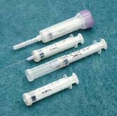 • Monoject 6cc safety syringe with patented two step locking safety shield. Can provide true transport position. Restrictive end collar. Bold graduations 0.2cc. Luer lock syringe tip. Sterile. 50/bx, 300/case.