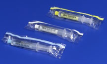 - Saline and heparin flush syringes