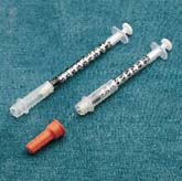 • Monoject insulin safety syringe, safety shield with patented two-step locking mechanism. True transport position, ultra-comfort, anti-coring, electropolished stainless steel permanently attached 29 G x 1/2 inch needle. Accu-tip flat plunger tip, accu-scale graduations, low dead space, for U100 insulin. Sterile. 100/bx, 500/case.