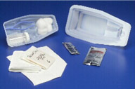 - Curity Universal Catheter Insertion Tray (CSR Wrapped). All trays contain: 10cc Prefilled Syringe, Lidded tray, underpad, latex gloves, fenestrated drape, PVI solution, prepping balls, forceps, lubricating jelly, specimen container, graduated basin.