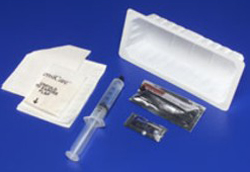 • Kenguard Universal Catheter Insertion Tray (Peel Back Lid). Tray contains: 30cc Prefilled syringe, BZK swab sticks (3), lidded tray, underpad, latex gloves, fenestrated drape, lubricating jelly, graduated basin.