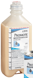- Promote, very-high-protein nutrition. Promote is a high-protein liquid formula for patients who may have increased protein needs relative to their estimated calorie requirements. The concentration of nutrients in Promote permits patients with moderate to low energy requirements to meet 100% of the National Academy of Sciences-National Research Council (NAS/NRC) RDA for vitamins and minerals in 1000 Cal (mL) of product. Promote can be used as an oral supplement or for sole-source feeding. For patients with pressure ulcers. For patients recovering from infection, injury, or surgery. For patients with or at risk for protein-energy malnutrition (PEM). For chronically ill, inactive, or nonambulatory patients. Complete, balanced nutrition. For supplemental or sole-source nutrition. For oral or tube feeding. High in protein. Lactose and gluten-free. Vanilla flavor, Ross Ready-To-Hang 1000-mL prefilled containers.