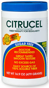 - Citrucel - Sugar Free Fiber Therapy for Regularity, Methylcellulose, Orange Flavor 16.9 oz. A Smooth Non-Gritty Therapeutic Fiber Derived From a Natural Source. Great Taste, Smooth Texture. No Excess Gas. Daily Source of 100% Soluble Fiber. Sugar Free. Great-Tasting Orange Flavor. Encourages gentle elimination naturally, without chemical stimulants. Doctor recommended for restoring and maintaining regularity. Mixes easily. Indications: For relief of constipation (irregularity). This product helps restore and maintain regularity. Also useful in the treatment of constipation associated with other bowel disorders when recommended by a physician.