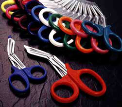 - Medicut medical grade utility shears. Razor sharp, super-hardened surgical stainless steel blades with one serrated edge to cut through the toughest materials. Blades tempered to a Rockwell hardness of C56 for unsurpassed durability. Contoured polypropylene handles with one large ring provide maximum control and comfort. Extra large rivet with a rated strength of 88kg assures smooth cutting action and rugged durability. Fully autoclavable. MiniMedicut, smaller 5-1/2" length is ideal for cutting bandages, tape and clothing. Polypropylene safety bandage tip . Two year quality performance guaeantee. Color: Black.