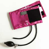 - Adcuff Inflation System. Includes ADC's exclusive Adcuff nylon cuff (#830 series) featuring the Size Guide marking system. Latex or latex-free inflation bladder with two 55cm tubes (#810 series) Adflow bulb and valve (#872) with filter screen protection. For use with most aneroid or mercurial blood pressure instruments. Individually boxed. Two year warranty. Luer connector (#891F) included. Color: Black. Size: Large Adult.