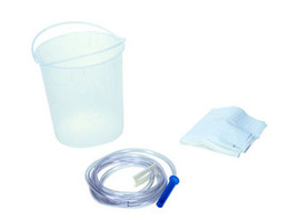 AMSure Cleansing Enema Bucket Set. 1500 ml bucket with 60" tubing with pre-lubricated tip, slide clamp, soap packet, and waterproof drape.