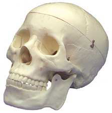 - Budget Life-Size Skull. This economical, life-size adult plastic skull is ideal for students studying for tests. It clearly shows suture lines, and features a movable jaw, cut calvarium and 3 removable lower teeth - incisor, cuspid and molar. Dissects into 3 parts. Includes key card identifying 75 structures. Size: 5"w x 8-1/2"h x 6"d. Weight: 5 lbs.