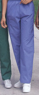 - Unisex Cargo Pocket Scrub Pants. Color: Navy. Size: Medium. Length: Long (33" inseam). Elasticized waistband; deep double pocket on right leg and roomy single pocket on left leg. Polyester/Cotton. Unisex Sizing (Waist Measurement): XS - 26 to 28 in.; S - 29 to 31; M - 32 to 34; L - 35 to 38; XL - 39 to 42; XXL - 43 to 46; XXXL - 47 to 50.
