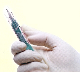 #11 BD Bard-Parker protected scalpel with locking retractable clear shield, sterile, disposable, one-handed activation, non-slip grip, stainless steel.