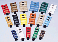 - Cuff Weights, 3 lb. Gold. Cuff Weights come with a long Velcro strap to provide a comfortable and secure fit for the wrist or ankle. The Cuff Weights are also color coded since there are 17 weights available and each one has the weight printed, in both pounds and kilograms, on the front.