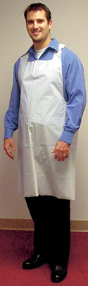 Banta Foodcare Brand Basic Poly Aprons. Regular weight. Embossed, white and individually bagged. 28" x 46" Apron, 100/bx.