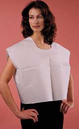 - Disposable Tissue/Poly/Tissue Cape, front/back opening. The tissue poly tissue construction places a layer of poly film between two layers of absorbent tissue for added strength that will not tear during extended exams. 30"X 21". Color: Mauve.