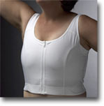 - The Compressure Comfort Bra. Size: 44AB. For lymphedema and other post surgical needs. Features the unique, patented Compressure Comfort System which offers fashionable comfort and gentle compression for swelling due to chest and breast lymphedema. Longer silhouette extends area of compressive support. Inner support system comfortably supports breasts and/or prostheses. Natural stretch conform cups, underarm gussets. Adjustable, padded straps. Soft, non-roll lower band. Innovative variable track rear closure. Front zipper.