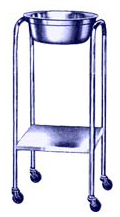 - The Baker Solution Stand has a single basin with a supporting frame connected by your choice of a bottom shelf or H-brace. The bracing and shelf, as well as all stainless welded construction, enhance the stand's strength and stability. Stainless steel basin has large 8 1/2 qt. capacity yet is unusually quiet when dropped into the circular ring. Rubber buttons are placed strategically inside the ring to reduce noise from metal to metal contact. On two inch swivel casters. 15"L x 15.25"W x 33"H.