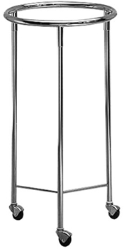 Round Linen Hamper, 18". Durable chrome plated steel. 3" rubber wheel, ball bearing casters. .75" bag support bars.