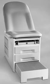 - Brewer Access Exam Table. Spacious, secure and adjustable patient step. Large abundant storage for supplies. Versatile pass-thru back drawers that open from both sides of the table. Reversible outlets that can be easily positioned on the right or left side. Comfortable, easy to clean upholstery. Smooth, quiet pneumatic cylinder for effortless positioning. Specify upholstery color code when ordering: (1) Clamshell, (2) Gunmetal, (3) Adriatic, (4) Burgundy, (5) Emerald, (6) Mauve, (7) Azure Blue, (8) Royal Plum, (9) Plum, (10) Deep Teal.