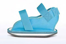 - Open-Toe Cast Shoe. Size: Adult Small (8 1/2"). Color: Blue. The Open-Toe Cast Shoe is constructed with a heavy canvas upper for increased strength and a tri-level EVA rocker bottom that provides shock absorption and smooth, roll-through gait for greater walking stability. Affordably priced, this premium cast shoe can be worn on either the left or right foot.
