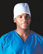 Surgeons cap is an OR head covering made of soft and absorbent kaycel material, with wide panel sides, ventilated crown, and adjustable ties.