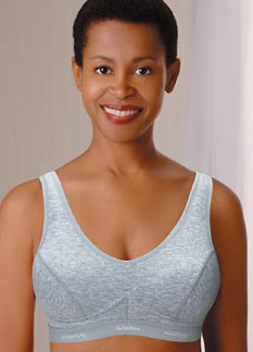 - Activity Post Mastectomy Bra. Size: 38AB. Color: Grey. Ideal for the customer with an active lifestyle looking for function and comfort. All over cotton/lycra heather grey material is sporty, durable and provides support for light to moderate impact activities. Printed logo on 1" woven bottom band provides a sporty appearance and comfortably anchors the bra. CoolMax pocket fabric provides moisture management and is cool and comfortable against the skin. Elastic binding on neckline and armholes provides support, comfort and holds the breast form securely in place. Adjustable rigid back straps provide support and minimize movement during activity. Lightly padded strap extension is comfortable and won't dig into the skin. No fiberfill.