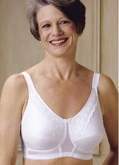 - Scalloped Embroidered Lace Softcup Post Mastectomy Bra. Size: 42C. Color: Champagne. Full. Scalloped embroidered lace overlays the upper cups of this nylon tricot, fiberfill softcup. The neckline is finished with an elastic trim to provide a secure and supportive fit. Soft, two-way stretch tech-sheen fabric at the back is soft, comfortable, and secure. Three-piece cotton/poly mesh pocket construction features side panel opening. Elastic straps adjust in the back.