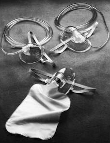- Allegiance Airlife Disposable Vinyl Oxygen Masks; Adult, Under-the-Chin Style; Medium Concentration with 7'L (2m) tubing. These Airlife disposable oxygen masks are soft, odorless and made from high-grade resins. The feathered and flash-free edges and ports make for cool, lightweight comfort while reducing irritation points. The wide elastic band with interlocking tabs and no metal clips prevents roll and provides patient comfort. All Airlife oxygen masks are designed for anatomical compatibility. The Airlife 3-in-1 masks are packaged as high concentration, nonrebreathing masks complete with reservoir bags and one-way valves. To convert these masks to a rebreather, simply remove the valve at the top of the reservoir bag. To convert a simple medium concentration mask, remove all valves and the reservoir bag and insert the oxygen tube adapter included in the package.