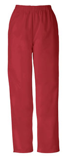Ladies Pull-On Pant. Size: Medium. Color: Red. This basic elastic waist, pull-on pant features two slash pockets. Inseam: 30". Poly/Cotton.