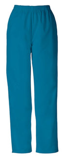 Ladies Pull-On Pant. Size: Petite Large. Color: Caribbean Blue. This basic elastic waist, pull-on pant features two slash pockets. Inseam: 27.5". Poly/Cotton.