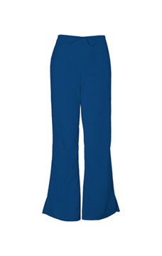 - Ladies Low Rise Pant. Size: Petite XS. Color: Navy. Side vents at the bottom of this flare leg pant make a fashion statement. An adjustable front drawstring, back elastic waist, slash pockets, and one back patch pocket are also featured. Inseam: 28.5". Poly/Cotton with soil release.