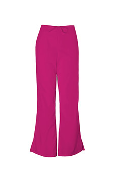 - Ladies Low Rise Pant. Size: Small & Tall. Color: Raspberry. Side vents at the bottom of this flare leg pant make a fashion statement. An adjustable front drawstring, back elastic waist, slash pockets, and one back patch pocket are also featured. Inseam: 33.5". Poly/Cotton with soil release.