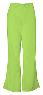 - Ladies Low Rise Pant. Size: Petite Small. Color: Lime Green. Side vents at the bottom of this flare leg pant make a fashion statement. An adjustable front drawstring, back elastic waist, slash pockets, one back patch pocket, and side vents are also featured. Inseam: 28.5". Poly/Cotton.