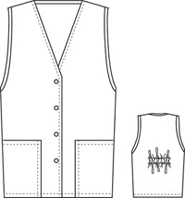 Ladies Patch Pocket Vest, White, Size Large (Bust 40-43, Waist 31-34, Hip 42-45). Sporty vest with button front styling and two roomy patch pockets. Soft elastic shirring in center back. 100% Cotton.