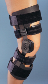 - Semi-rigid, lightweight combined instability brace affords maximum comfort and protection. Dual axis motion control hinges provide convenient dial-in adjustment with full and limited range-of-motion settings. 14-1/2"-18-1/2" circumference, size Small.