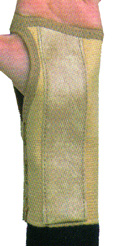 Elastic Wrist Brace. Right, Medium. Cotton/elastic contruction with preformed aluminum stay. Contact closure.