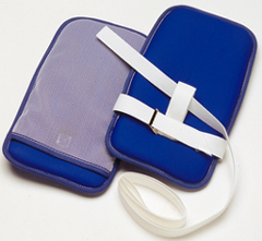 Procare Small/Medium Hand Control Mitt, Rigid. Manufactured of Cool-Mesh and tricot-foam with non-slip buckle closure. Extra straps to control arm movement. Flexible.