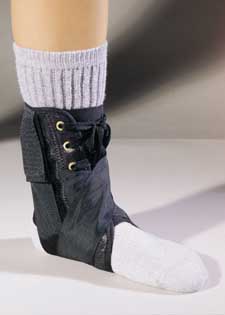 - Sturdy cool cotton mesh and flannel design. Non-stretch figure-eight nylon straps provide support and lock-in heel to help prevent inversion/eversion. Fits into any athletic or street shoe. Fits right or left. With sock on - fits ankle circumference of 11" - 12".