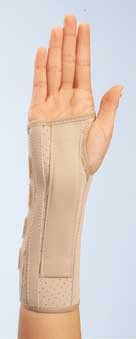 Contoured wrist support. Quality slip-on design suede/vinyl support with flannel lining. Contact loop/lock closure. Medium fits wrist circumference of 6-1/2" to 7-1/2".