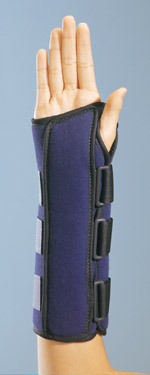 Breathable nylon/fiber with flannelette liner. 10" length. Loop/lock closure. Adjustable dorsal support. Universal size. Left arm.