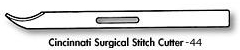 - Cincinnati Surgical Stainless Steel Stitch Cutters. Surgical steel sharpness. Sterile and disposable. Rounded point prevents skin puncture. Narrow tapered design for small stitches. Unopened packages may be autoclaved. Packaged in easy-to-peel package. Packaging: 100/box.