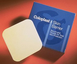 Skin barrier, secure and flexible for total skin protection around stomas, draining wounds, and other areas subject to irritation. Non-pectin and latex free. 4"x4". Box of 5. HCPCS code A4362.