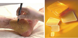 Hydrocolloid dressing for low exudate applications. Transparency enables wound visualization; measurement grid on dressing to minimize edge roll; semi-permeable; self-adhering.