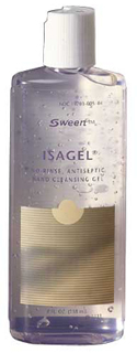 - Isagel No-Rinse, Antiseptic Hand Cleansing Gel, 800 mL. Convenient 60% ethyl alcohol hand sanitizer for use without water. May be used in all clinical situations when hands are not soiled. In vitro testing demonstrates that this instant hand sanitizing gel, effective against MRSA and VRE, kills 99.9% of most microorganisms in just 15 seconds or less. Nurtures skin with moisturizers as it sanitizes.