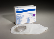 Sur-Fit Natura, transparent, standard urostomy pouch with Accuseal Tap and one sided comfort panel. 1-3/4" stoma. Each box contains two Accuseal adapters.