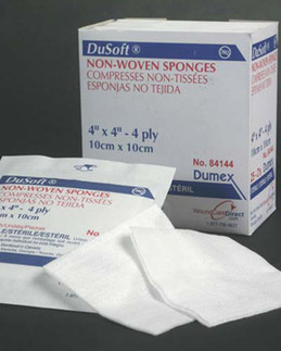 - Dusoft Non-Woven Dressings/Sponges, sterile, comparable to Versalon and NuGauze. These non-woven sponges are ideal for wound cleaning and as secondary dressings for added absorbency. Size: 4"x 4", 2's 4ply, 25/pkgs/tray x 24 trays/case.