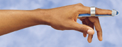 Baseball Finger Splint. Helps stabilize fractures of the distal phalanx. Malleable aluminum lined with foam. Size: Medium.