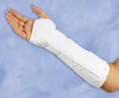 - Leatherette Wrist and Forearm Splint with Loop Lock Closure, White. Unique loop lock closure provides optimal immobilization. Special "wedge contour" design truly fits the hand, wrist and forearm. Special compression device provides controlled ulnar and radial compression. Does not extend past the palmar crease. New design allows full thumb freedom. Perforated vinyl allows patient's skin to breathe. Size: Large. Left hand.